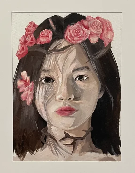 I wanted to explore my connection with nature and how it surrounds me. The roses and branches wrapping around my head and neck represent growth and the way nature becomes part of me. Through this piece, I wanted to show harmony between myself and the natural world, where both beauty and life are connected deeply.