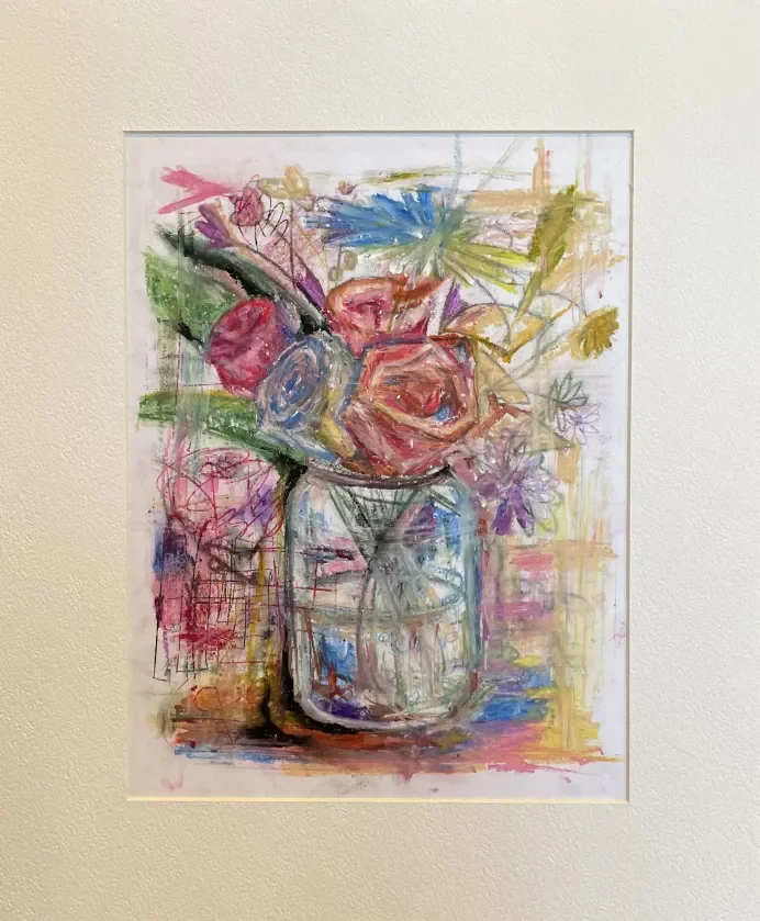 I want to explore the balance between life and chaos. The bold strokes of the crayons and the vibrant colors used in this artwork capture the beauty of flowers, while the tangled-up lines and darker/ negative areas express chaos and messiness in life. Through this piece, I wanted to show that even in chaos, there are still life and beauty that exists.