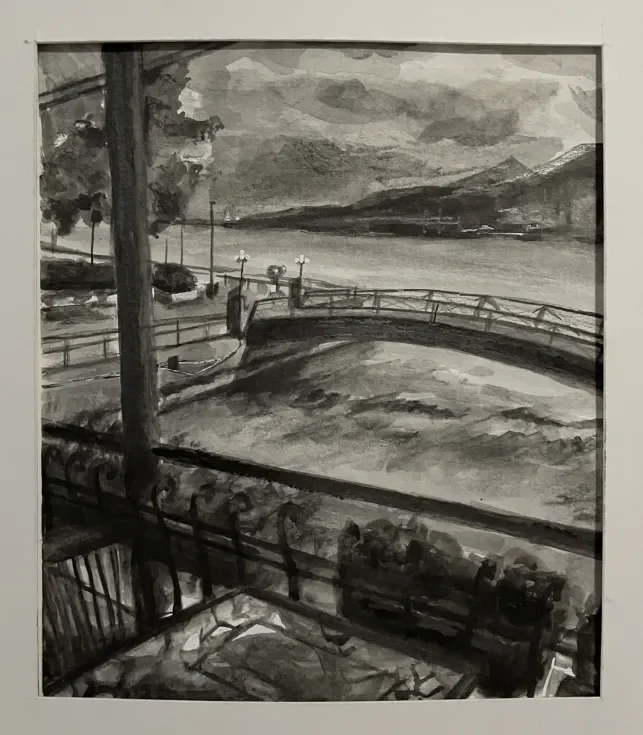 I want to capture the calmness of a gloomy morning. Using water-soluble graphite helped me blend soft and dark tones to create a quiet, peaceful atmosphere.