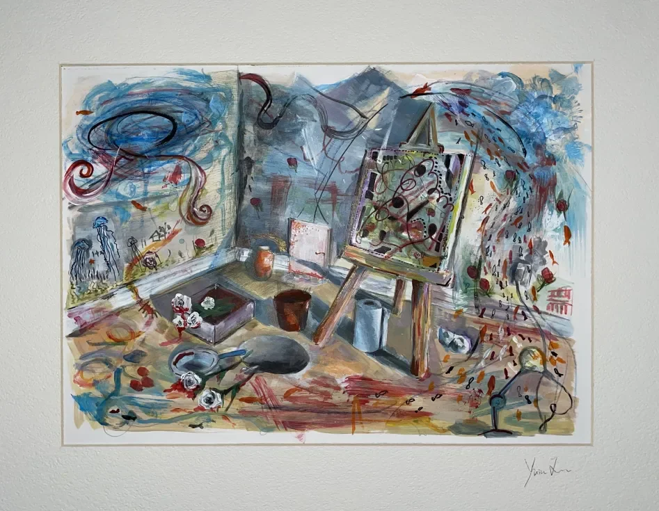 I wanted to explore the feeling of a cluttered mind through a chaotic environment. Inspired by horror vacui, I filled the room with details, using acrylic paint, markers, crayons, and ink to make the space feel full and almost overwhelming. Through this piece, I wanted to show how thoughts and surroundings can spill over, creating a sense of energy and chaos on the canvas.